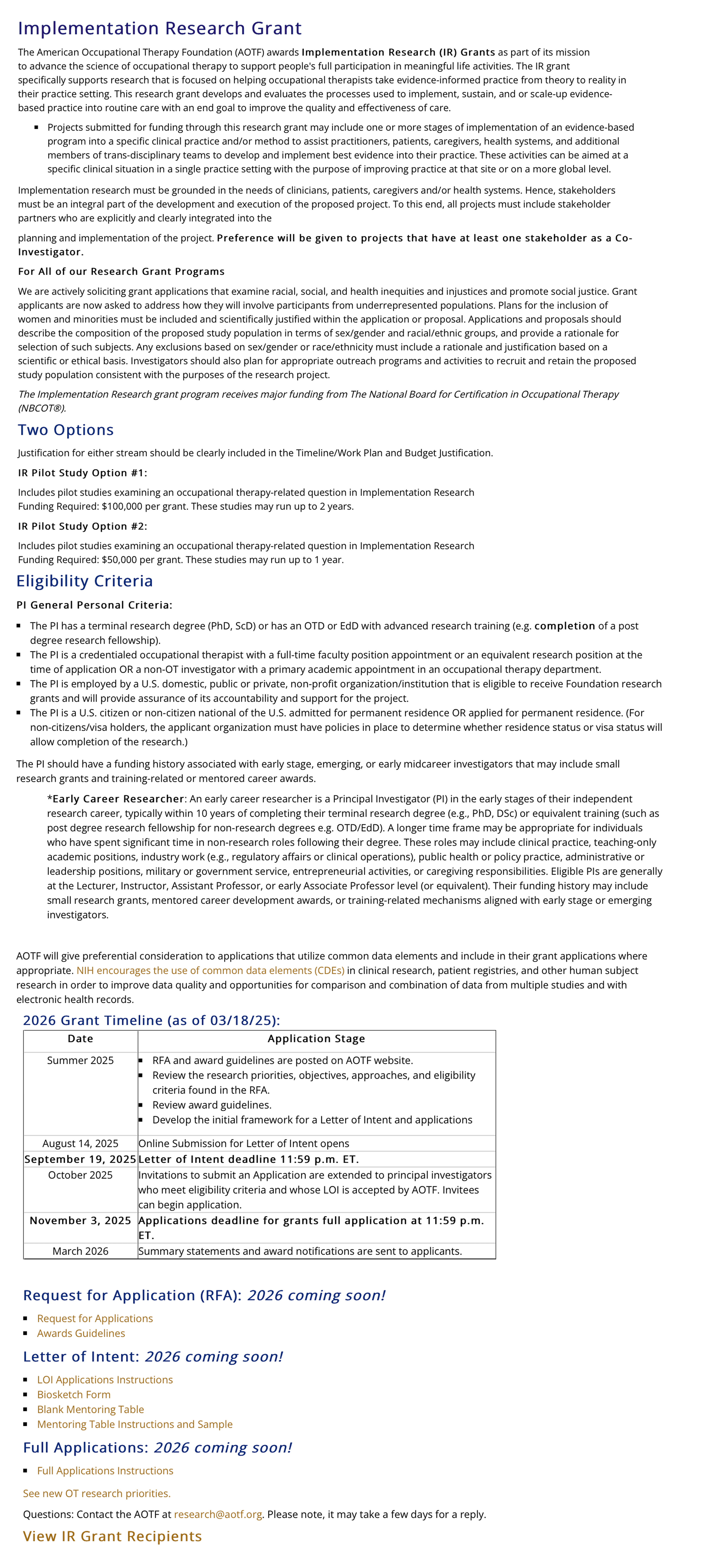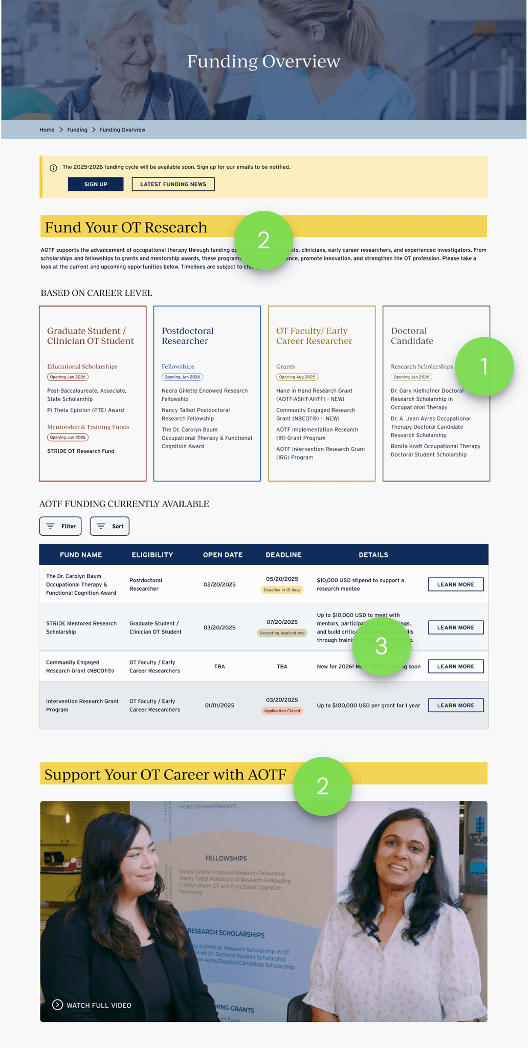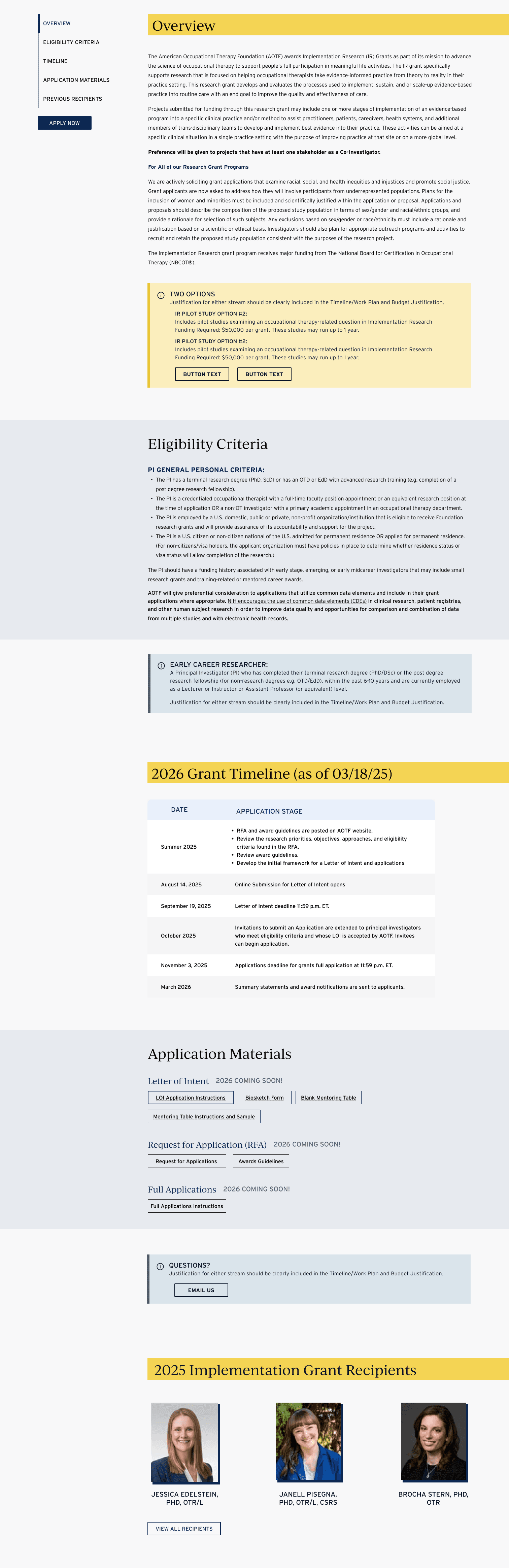This is an iConsultancy capstone project being completed by five University of Maryland students on behalf of American Occupational Therapy Foundation (AOTF). This project gives us the opportunity to apply the skills learned through coursework to a real world problem. This project follows the research, design, and evaluation process from end-to-end.