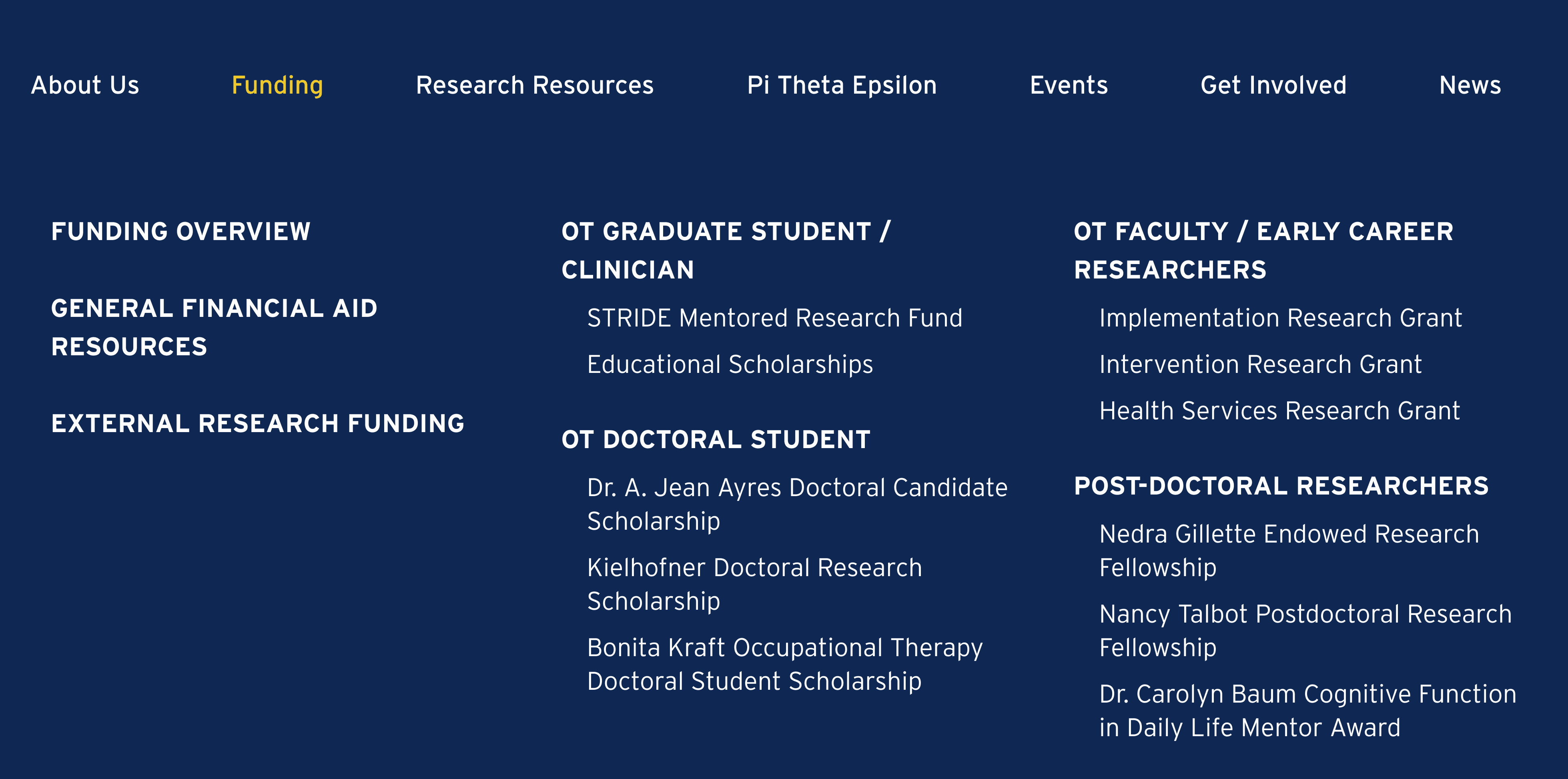 Searching for funding was a common task. However, many clicked “Scholarship,” missing options hidden under “Grants.”
